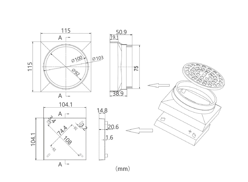 - Chrome (SC-SQ115), Matte Black (SC-SQ115BK), Brushed Brass (SC-SQ115BB) - Coming Soon, Gun Metal (SC-SQ115GM) - Coming Soon Material: 304 Grade Stainless Steel Dimensions: 115x115mm