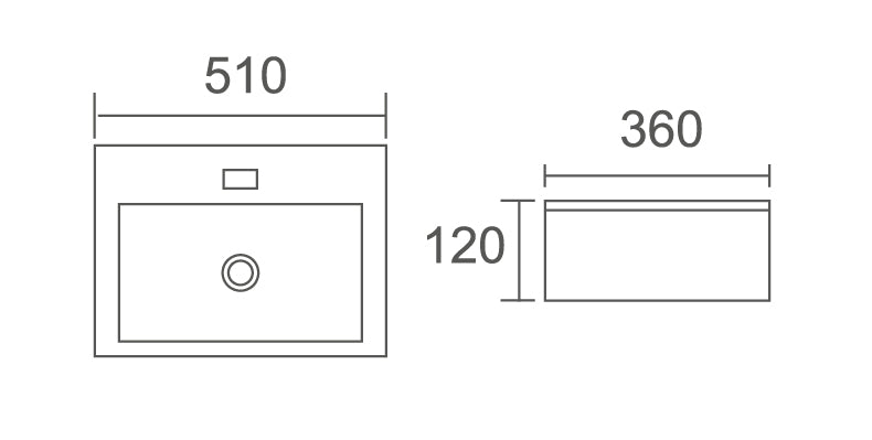 *Use 32mm without Overflow Waste (Not Included)* Material: Ceramic Capacity & Weight: 5L, 14kg Dimensions: 510x360x120mm Basin Alignment: COUNTER TOP
