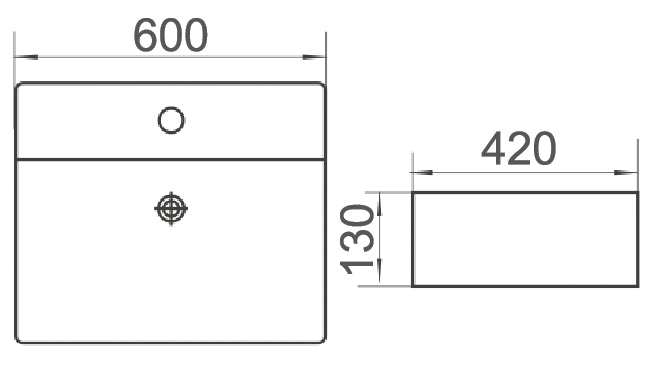*Use 32mm with Overflow Waste (Not Included)* Material: Ceramic Capacity & Weight: 8L, 16kg Dimensions: 600x420x130mm Basin Alignment: COUNTER TOP