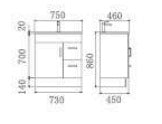 Available in 750mm Only with either Left or Right Hand Drawers Material: Moisture Resistant Particleboard and Medium-Density Fibreboard Capacity & Weight: Cabinet: 38KG Dimensions: Cabinet: 730x860x450mm
