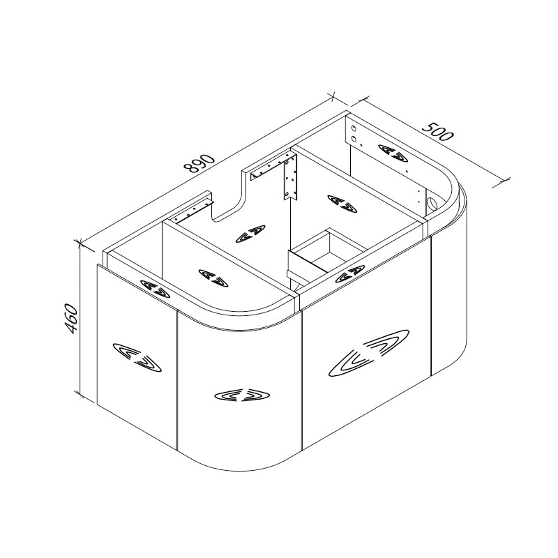Cabinet: 890/ 1190/ 1490 x 500 x 460mm