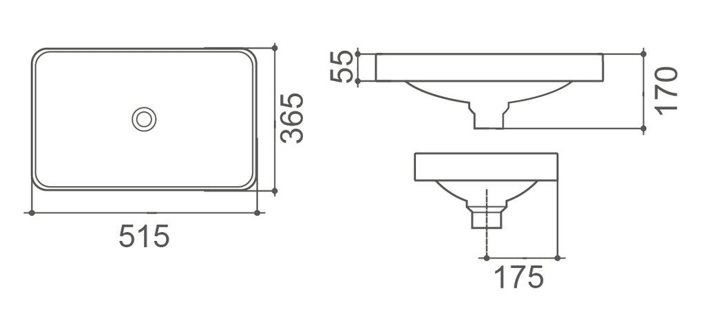 *Use 32mm with Overflow Waste (Not Included)* Material: Ceramic Capacity & Weight: 10L, 8.5kg Dimensions: 515x365x170mm Basin Alignment: Half Insert