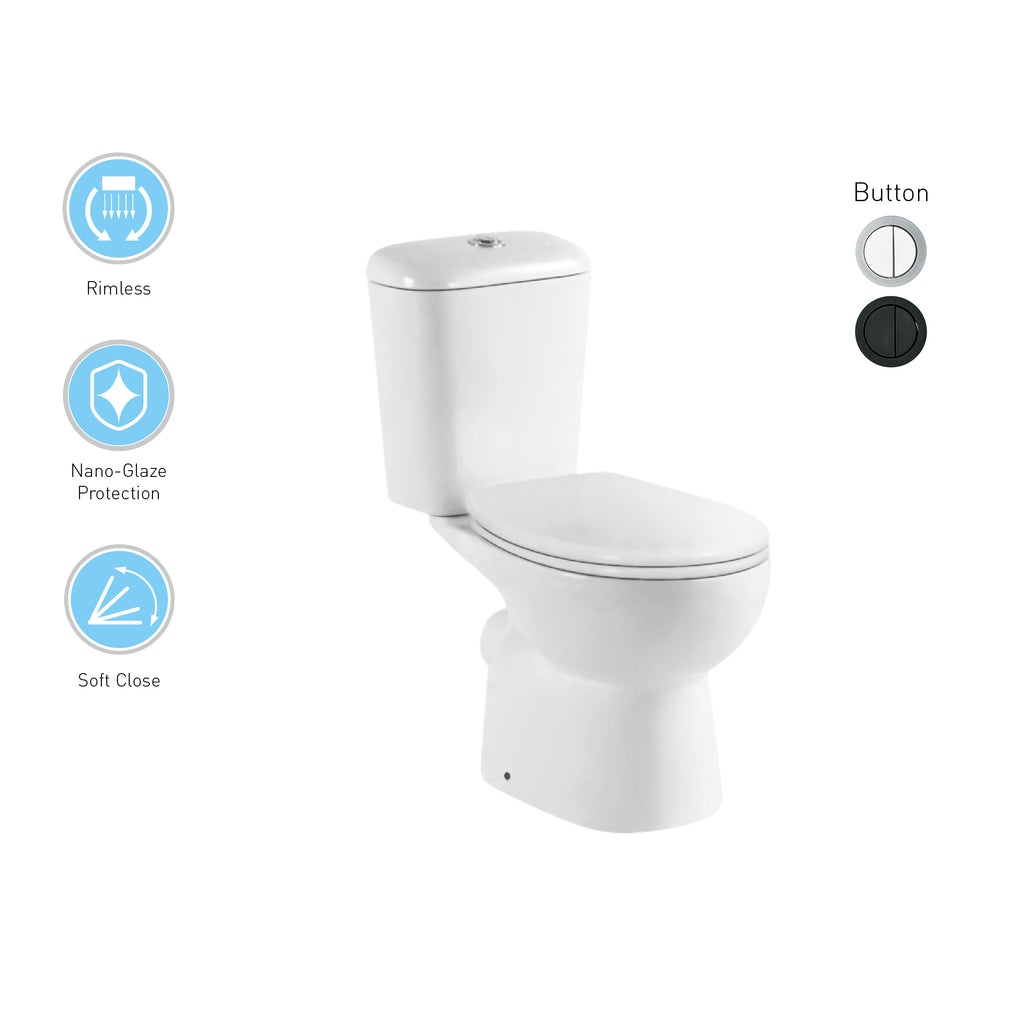 STYLO Rimless close couple toilet suite Bottom right hand inlet WELS reg.No.:L05779